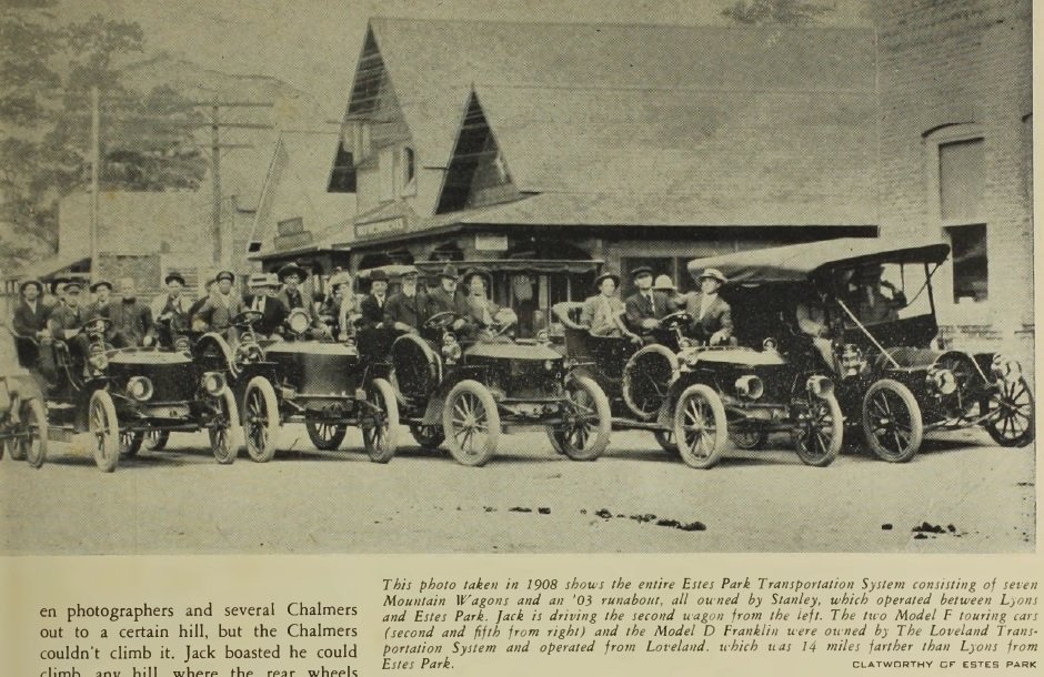 Things went very well through the 'teens, the Stanley did its work daily, hauling thousands of loads of visitors up to the springs and back down to town. Coyote Creek provided a handy source for clear water for the steamer. Stops on the bridge, with the syphon hose thrown over the railing into the creek below, took only a few minutes to fill the water tank under the front seat.