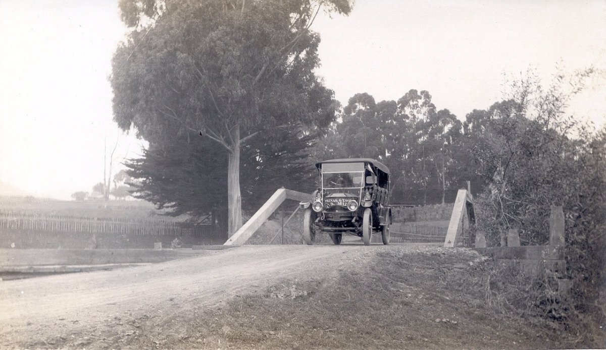 Things went very well through the 'teens, the Stanley did its work daily, hauling thousands of loads of visitors up to the springs and back down to town. Coyote Creek provided a handy source for clear water for the steamer. Stops on the bridge, with the syphon hose thrown over the railing into the creek below, took only a few minutes to fill the water tank under the front seat.