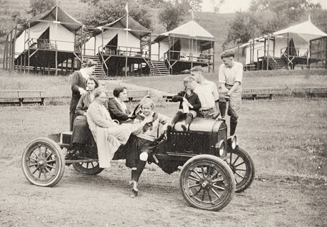 I particularly got a kick (as I always do) of the pic with the people having a picnic next to their car all dressed up in
