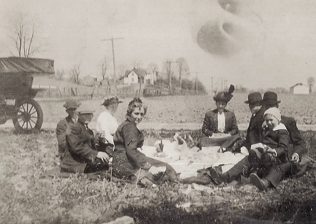 It's amazing how the family having a picnic lunch on the ground simply ignores the UFO hovering nearby....