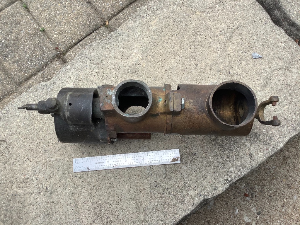 Thanks all. It’s encouraging another has been spotted. That indicates it likely not a one-off. Perry keet, examining it closer tells me these parts have always been together, but possibly something else missing. I believe it’s oriented this way, because that is a float with a possible drain valve wing nut at the bottom. It appears it would drain out the little overflow fountain. To me, very unusual that all these nice castings would have no numbers, mold marks, logo, nuthin! It takes some close looking, but I did find a 4 digit serial number, very small and hand stamped. The two side openings, 180degrees apart, show solder tinning. At first I thought maybe pipe(s) had been soldered in place, but no, some rings have been soldered in place, one to change the diameter and the other to cover up some machined holes. Pretty sure the top lever would control a barrel up and down , possibly to change air intake. Feel free to share pics anywhere else, I have trouble posting stuff on smokestack and others.