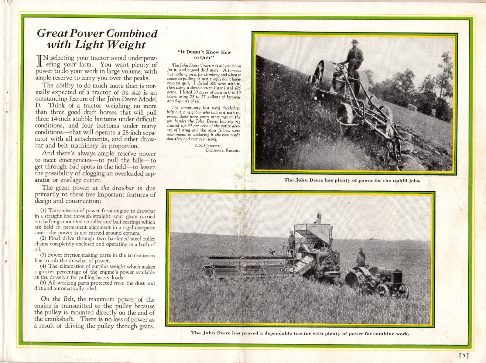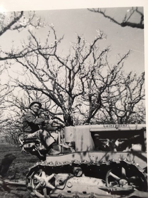 It was never mine, but I grew up with it. This is my maternal grandfather on his Caterpillar Two Ton. This particular tractor was a Cat, not the earlier Holt. Holt made the "Holt Caterpillar Two Ton" from about 1919 until 1925. In 1925 Holt and Best merged to create Caterpillar. This tractor was produced sometime during or after 1925 and before production of the Two Ton was discontinued in 1929. This photos date to about 1957.