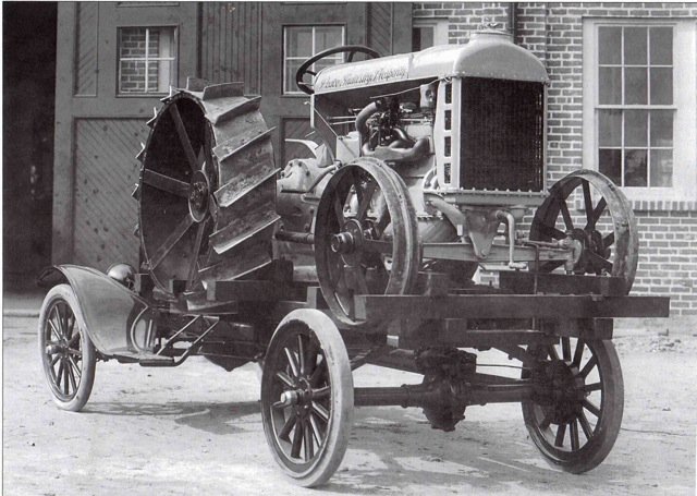 The tractor is very awkward to operate,only 2 speeds, fast and to fast to do much.And that is a Plymouth rearaxle narrowed and 1 brake pad removed.They used this design up to 1980 for rear axles!