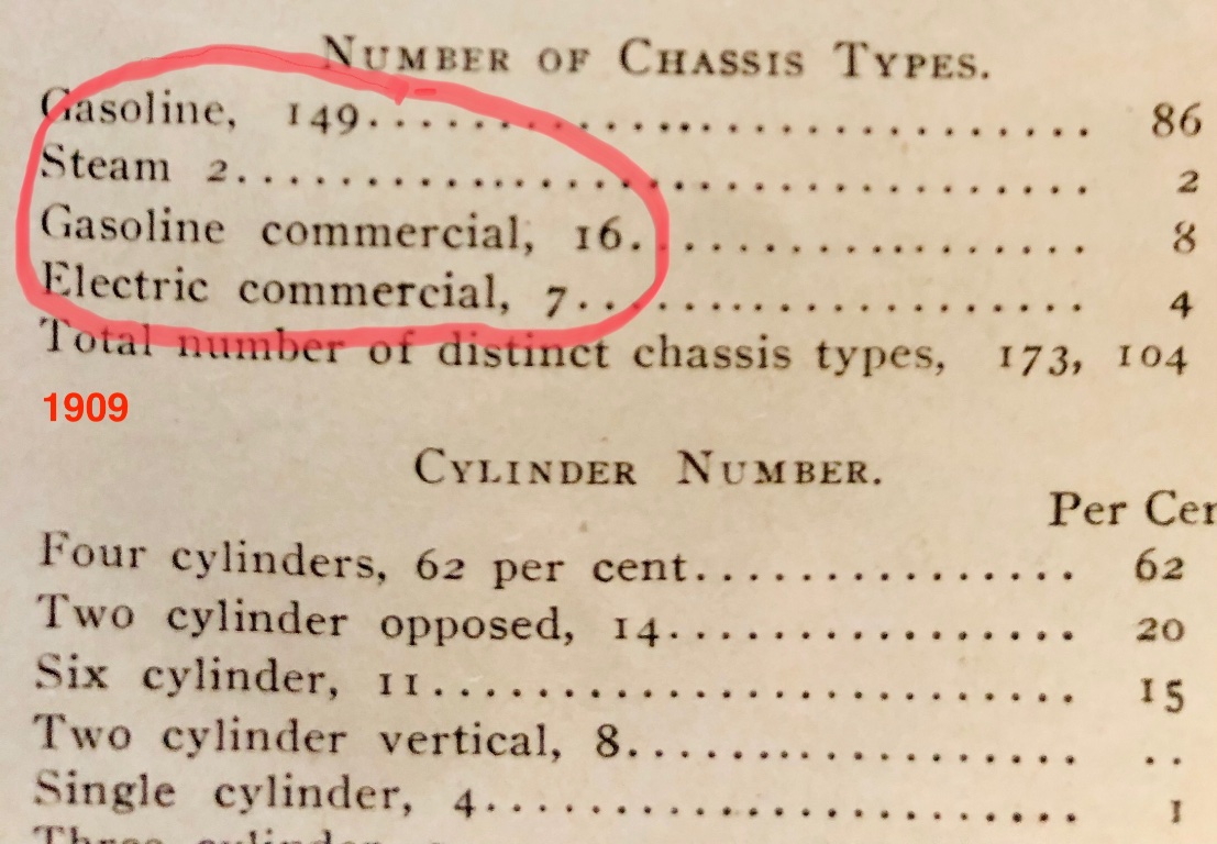 In 1909, the year of Edison's new battery, only handful of commercial trucks were battery powered, and at this New York show, no electric passenger cars were shown, same show that displayed the new Model T Ford.
