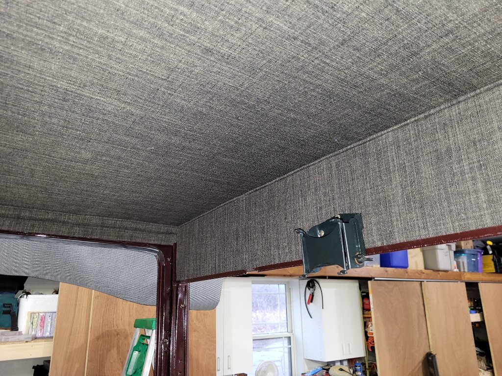 Photos of top installation. First photo is taking the original rain gutter apart. The inside piece was replaced with a piece of tape measure.