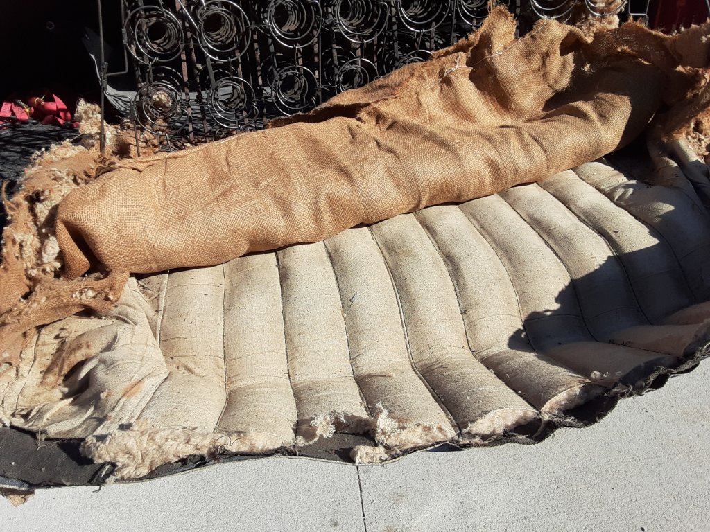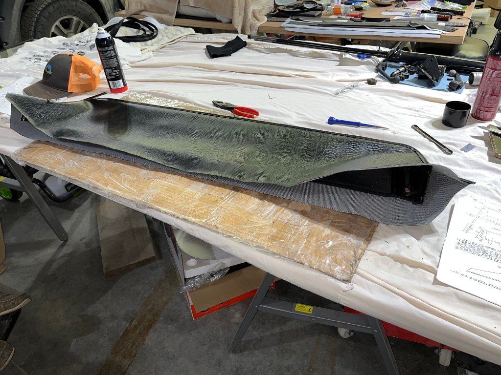 Photos of installation of top and interior material.