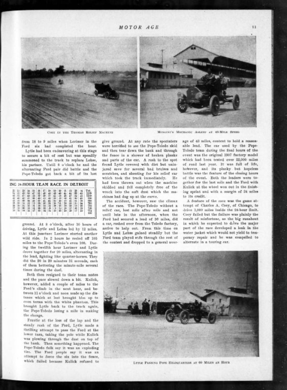 Thanks guys. I had a poor quality copy, so knew what I was looking for, but couldn't locate another copy. This helped me finish a project that has been a long time in the making (at least, in my mind). I'm starting another link with it if anyone is interested, regarding Ford's record setting victory in the 24 hour contest held at the Michigan State Fairground race track in June, 1907.