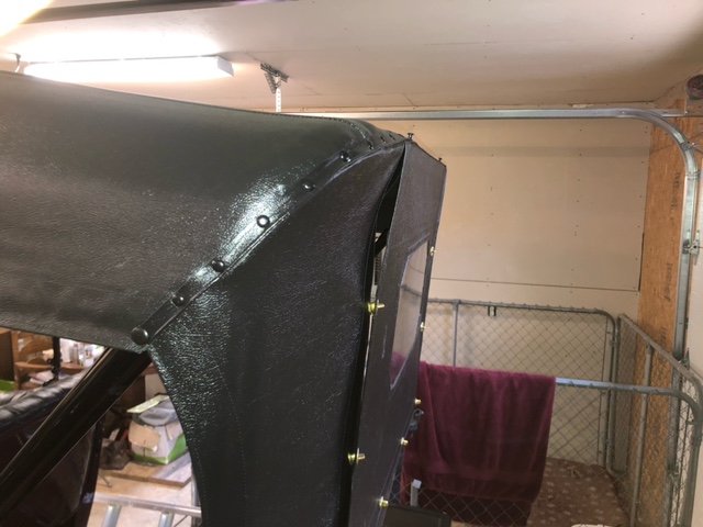 I used that diagram for my top bow height dimensions. There is a good article by Royce on The Model T Fix about replacing the top. I duct taped and wired my wooden bows alongside the metal bow sockets at those correct heights and stood them all in place on the car to check and recheck the heights. I made a mark on each wooden bow at the top of each socket so I could know where to start my tapered shaping to fit inside the socket. The ends of the bows can be shaped (tapered) with a draw knife or I just used a angle grinder. If you Google 1911 Model T top bow dimensions there is a great article with pictures of this by Gary London in a 2005 MTFCA forum. This part of the top installation is most important and took a lot of time. Once the bows are shaped and in the sockets they can be stood and held in place with wooden straps clamped on each side to check the heights and the rront and rear bow overhang. The rear bow should be set so that the rear edge of the bow is overhanging the back of the body by about 2.5 niches. That way when the rear curtain is tacked to the body and on the bow it kinda follows the angle of the rear of the body. The front bow needs to be approx 2 inches in front of the windshield approx even with the bottom of the top brass windshield frame. The next step is to Take it all down and wrap the bows with the bow wrap. Once the bows are wrapped temporarly stand all the bows back in place to double check all your measurements and observe the overall look. After that you can install the bow webbing front to rear, or in an X pattern between the bows to hold it all in place. My top kit came with webbing to run front to rear but I wanted to do the X pattern so Mike at Classtique made some webbing to do that. All this will take a considerable amount of time and patience. With the bows in place and held by the webbing you can install the front windshield flap if you are using one, and the rear curtain. The rear curtain will need hung from the rear bow, make a mark at the center of the bow and the center rear of the body and the center of the top and bottom of the curtain and match them up to each other. The rear curtain then needs to be marked at the bottom to match up to where the Murphy fasteners are on the body. The fastener eyelets have to be installed in the bottom of the rear curtain at those locations by using a razor blade or with a leather punch made for that purpose. I used the punch. Next I hung the rear side curtains and marked the bottoms for the Murphy fasteners. The side panels get tacked to the bow first because the rear center curtain rolls up . The rear side curtains and top panel can be stretched and tacked to the rear bow. After the rear curtains are attached to the bow and the body you install the padding front to rear so that it covers the curved section of the bows. The next step is to install the top deck. Mark the center of the front and rear bow and the center of the top deck material in order to line the deck up correctly. Lay the top deck in place and tack at the center of the rear bow at the rear edge of the bow so the finish welting covers the tacks then go the front bow pull it tight and tack the center of the front bow. From there you can start pulling the top tight and tacking it from the center out toward each side. I would start at the rear bow then go to the front bow. Remember to tack the top deck on the front side of the front bow at the lower edge so that the finish welting covers the tacks. I would get the bows finished and wait for a hot sunny day to install the rest. Do not trim anything, you can do that once you are happy with how it looks. The front sides of the top deck has to be left long so it can be wrapped around for a finished look. This is an outline of how I did my 11 top. You can email or pm me and I will send you some pictures and my phone number to answer any questions. Art
