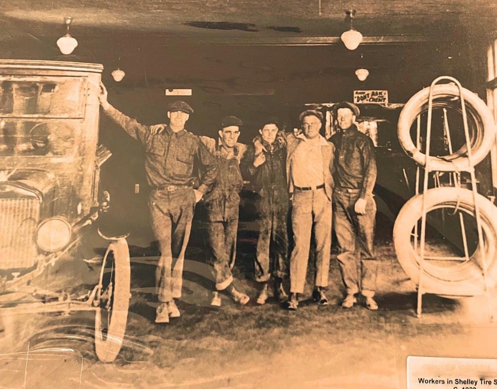 Photo labeled "tire shop, Shelley, Idaho" no date.