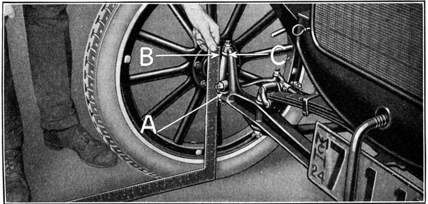 tilting the front axle with straightening bar until the correct adjustment is obtained. The bar