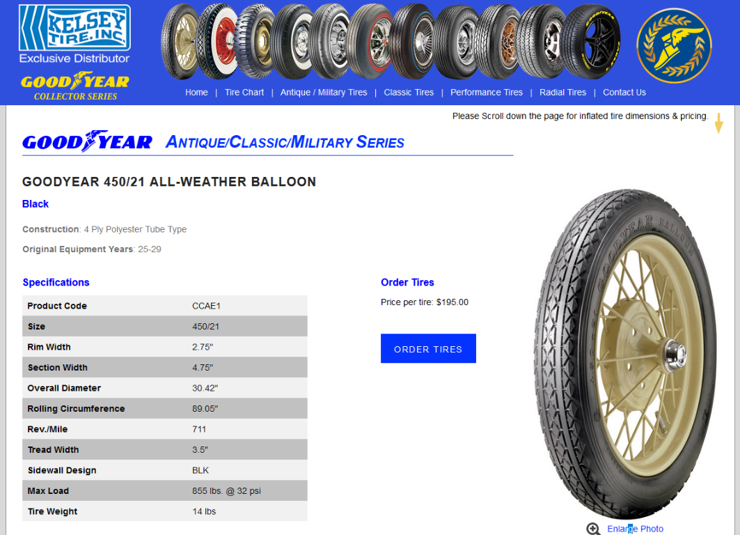This all they have for Military/Vintage Tires.Hudson29 wrote: ↑Tue May 25, 2021 5:08 pmAre these available in other T sizes such as 30 x 3 1/2?TRDxB2 wrote: ↑Tue May 25, 2021 4:48 pmI purchased these , liked the pattern and MADE IN U.S.A. by Good Year