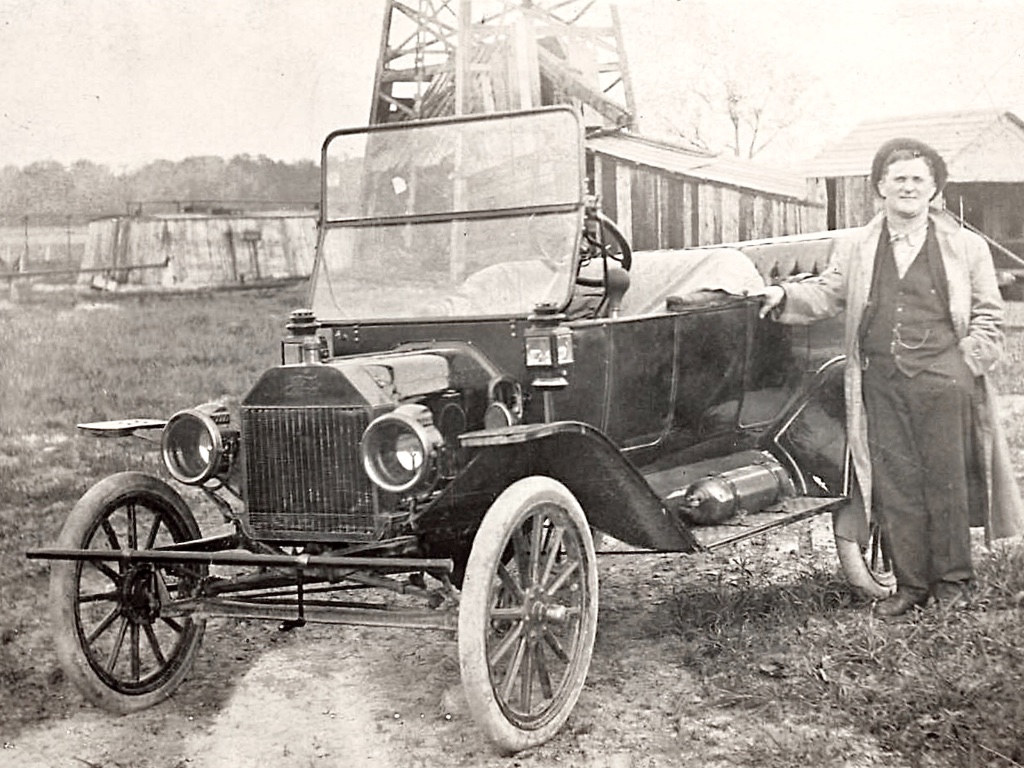 Re: T in front of "standard" oil derrick: When I was a kid, there were 4 of those rigs within 600 to 1500 feet of the house. A fifth well had a steel derrick, but retained the standard rig front. Two of the outfits were operational and pumping oil. One was powered by a Bessemer 25/30 HP single cylinder, 2 cycle gas engine, and the other was powered by a 35 HP Superior single cylinder 4 cycle engine. The other three were operated from a single 35 HP Superior single cylinder gas engine using pull rods laid along the ground to power underpull steel pump jacks sitting on the rig floors at the locations. I still have the powerhouse engine, and it still runs. The whole property was a mechanical wonderland.