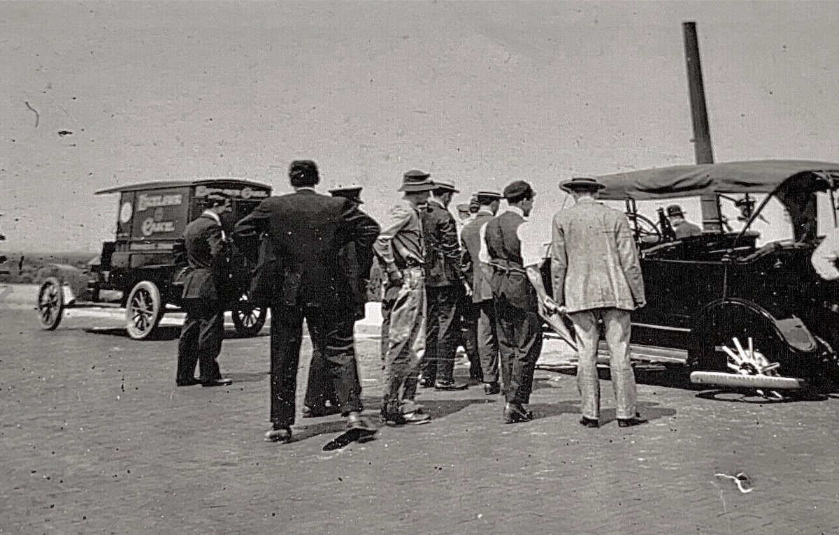 Original running board step plates on the sedan. And what is the purpose of those stair steps in the street in front of the store on the lower left? Is their purpose to make it easier to enter a horse drawn vehicle?