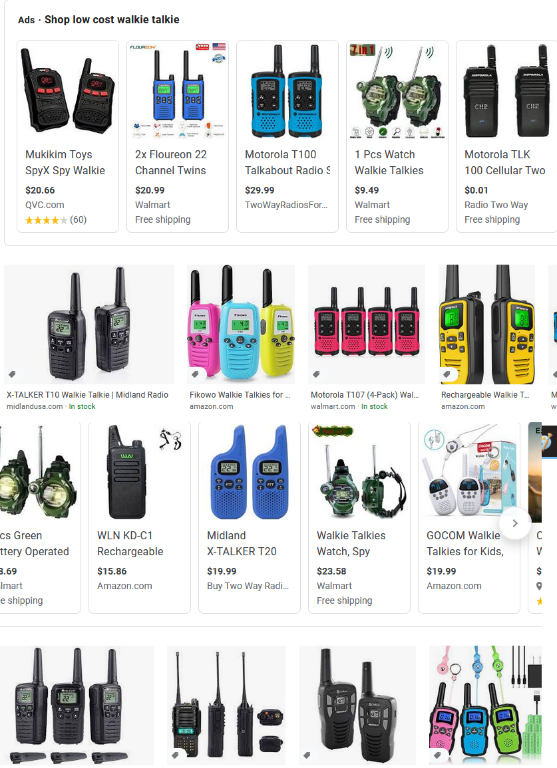 Go to an outdoor store such as Dick’s or Cabellos, that cater to hunters and hikers, they have small, powerful, reasonably priced radios that have a range of several miles that hunters use to keep in touch with eachother. When you are actually there in the store, a salesman can answer all your questions and you can choose the radio set you want after reviewing the specs and comparing prices. Years ago, before cellphones, we used “Ritron-Jobcom” radios at the Railcar shop to keep track of our field crews that repaired railcars out in the field. They were very good radios with a very long range. Go online to Grainger (www.grainger.com) and type “Ritron Jobcom” in the search box to read more about them, where, depending on the radio, cost about $170.00 apiece. Jim Patrick