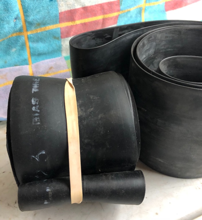 Proper Made in USA 23" flap surrounding a new tube going into a new tire casing.