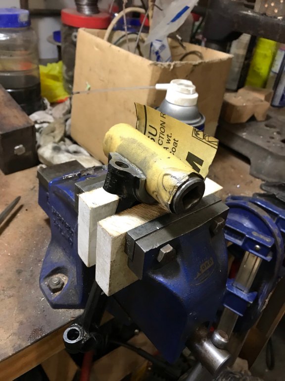 as an FYI, when things are buttoned back up, consider this: study the cotter pin on the rod in the photo...then mentally reinstall it in the opposite direction, bending the right hand leg to the right and clinched around the rod...now it's functional. As it is, it isn't doing anything that would be considered helpful.