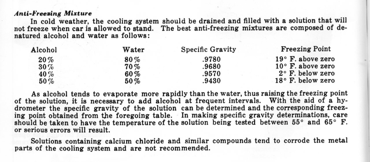 Isn't strange, how folks will buy a new $40K, or $50K pickup truck, and never really question what kind of anti-freeze is in the radiator? In fact, I really think most people will drive that same new vehicle until the factory warrantee runs out, and probably never have questioned their anti-freeze at all. And to top it off, that same vehicle is then purchased off of a used car lot,....oops! Sorry,....."previously owned" lot, and that F-150 goes a few more years with no more consideration by the new owner about the cooling system, except maybe to suck a bit of coolent into the cheapy NAPA anti-freeze tester to make sure you're good for "X" amount "below zero",....or, easier yet, just ask the guys at Jiffy-Lube to make sure your anti-freeze is "sufficient"! But in the Model T,....OH MY GOSH!! Worry about "PH", acid, corrosion protection, mineral deposits, use nothing but distilled water, or maybe no distilled water at all,....etc, etc, etc. Sheesh,.....!