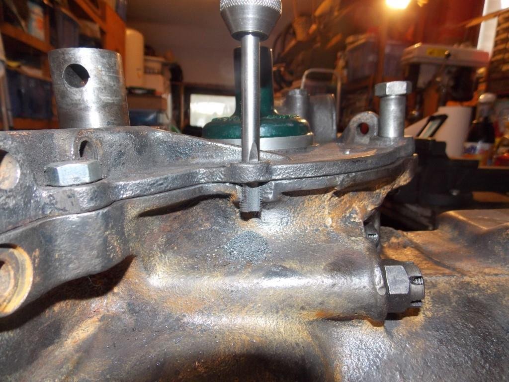 I then bolted the timing gear cover back on to get the center for the fan bolt. I center punched the center, drilled and tapped the new hole and all was well. That was almost 25 years ago and all is well.