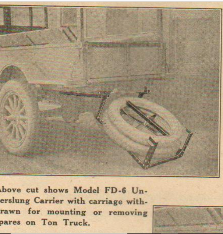That carrier is intended to hold one 30 x 3 front tire and one 30 x 3-1/2 rear tire, un-mounted, without rims, for a car without demountable rims.