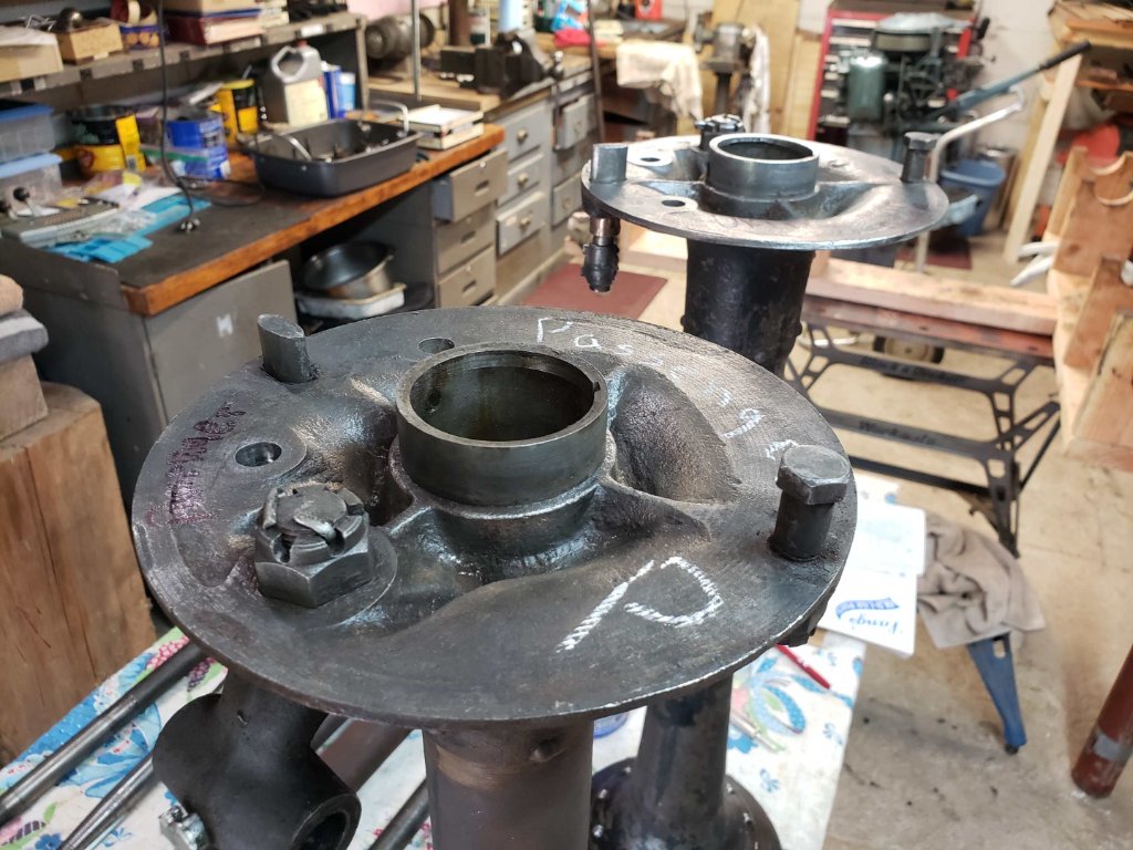 Today was just a disassembly day. Good we took it apart. Babbitt thrust washers, a sheared off pin at the universal joint, a terrible axle end and other minor maladies were discovered and will be corrected prior to reassembly. Several times today we both said we'd never regularly drive a new to us T without going through the rear. Too many small issues that can be found and caught before they become bigger ones.