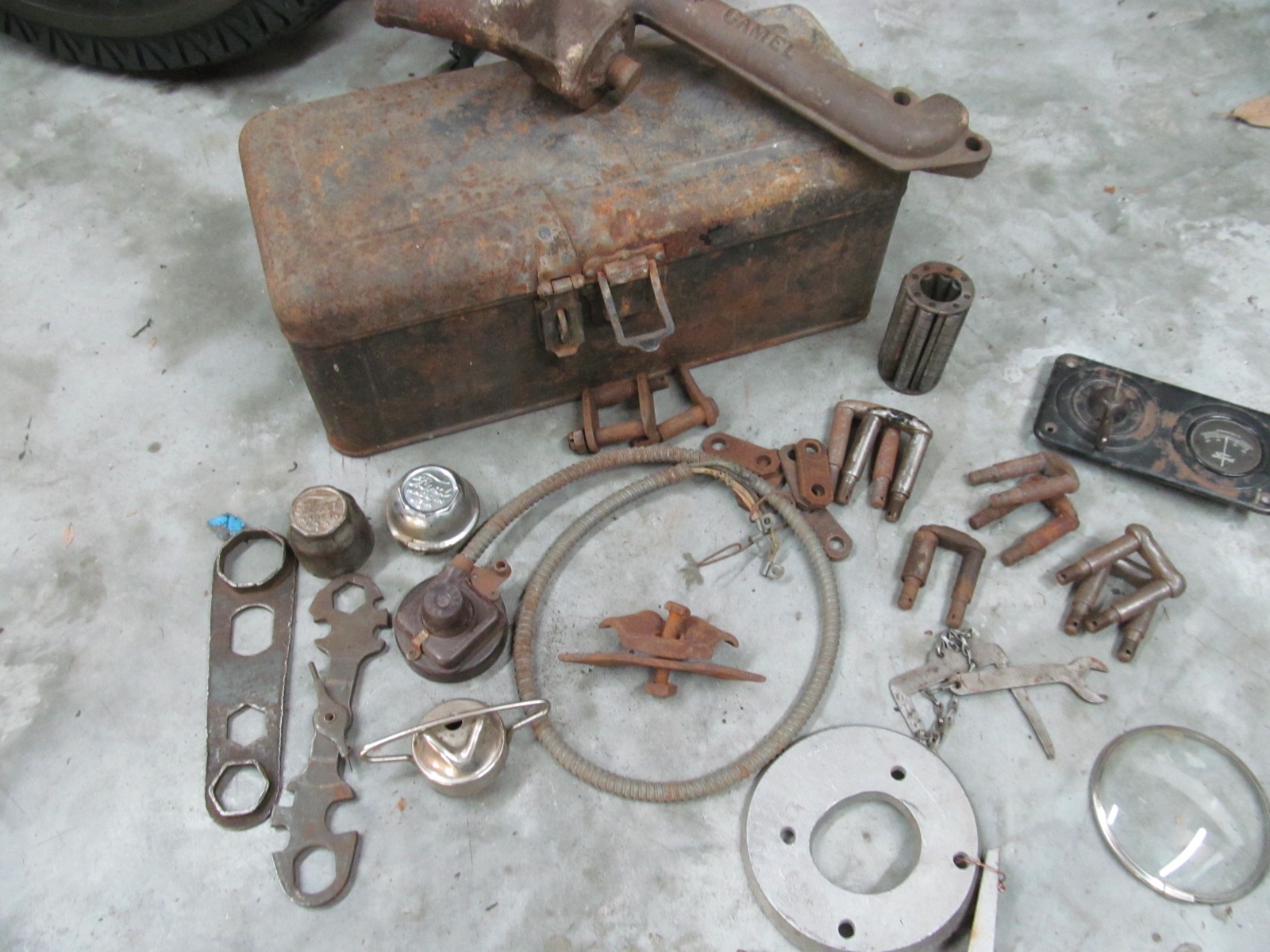 I didn't buy much this time: fourteen magneto headlight bulbs for $20; a pair of Holley G carburetor bodies for $15; and a Holley G bowl for $5. One of the G bodies is the pre-starter bronze version, and will be very pretty when cleaned and rebuilt.