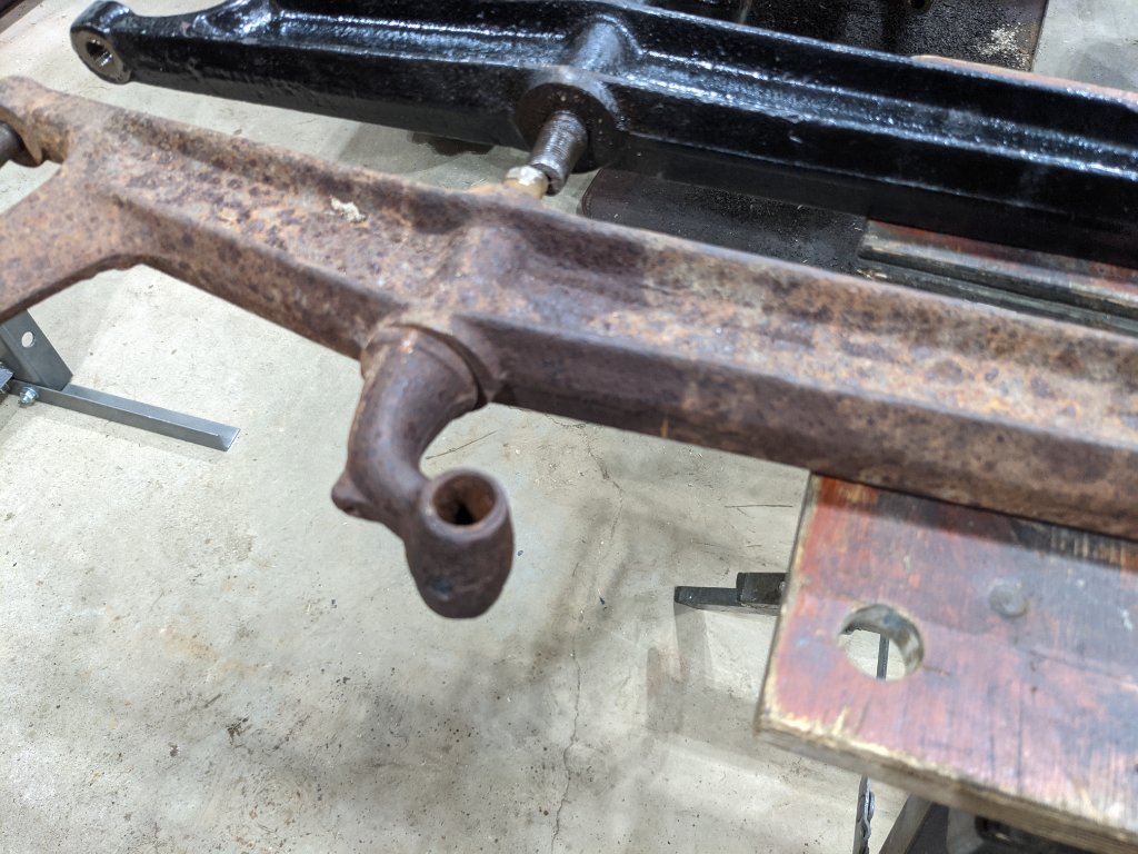 You can see a dip between the perch hole and yoke in this photo. I had not noticed that before. I'm having difficulty visualizing how I could support the axle in a press and get enough force to straighten it. Any thoughts you may have would be appreciated.