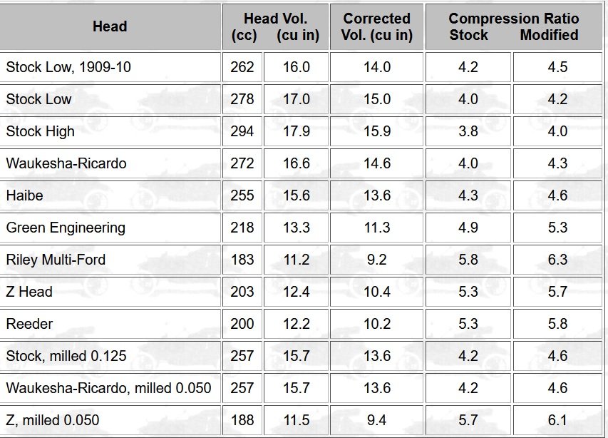 Re the CC; personally I don't see the need on a car that is going a top speed of 35 maybe 40. Some of these things, like cc'ing a head for the average T owner, might just be overkill.