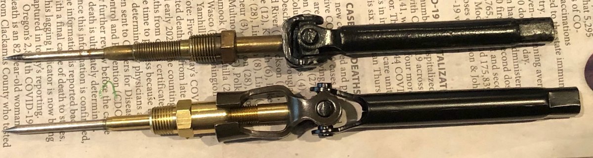 The needle is also about of thread. Might take a combination of getting the nut deeper, the friction tabs shortened & even a little counterbore to the top of the nut. Repo parts!Scott_Conger wrote: ↑Sat Aug 14, 2021 8:30 pmI won't edit my reply, but looking at your photo again, I absolutely agree with Dan. The fit of the part now is nominally OK and I was quick to judge otherwise. Comparing earlier photos of the length of the needle with/without the nut shows that grinding off perhaps 3/32" off the end of the grip fingers will allow somewhere between sufficient and ample room to allow the needle to seat.
