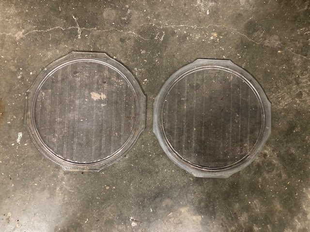 The a pair of clear glass lens, with cuts on 4 corners of the circle and they fit the clips on those late rims.