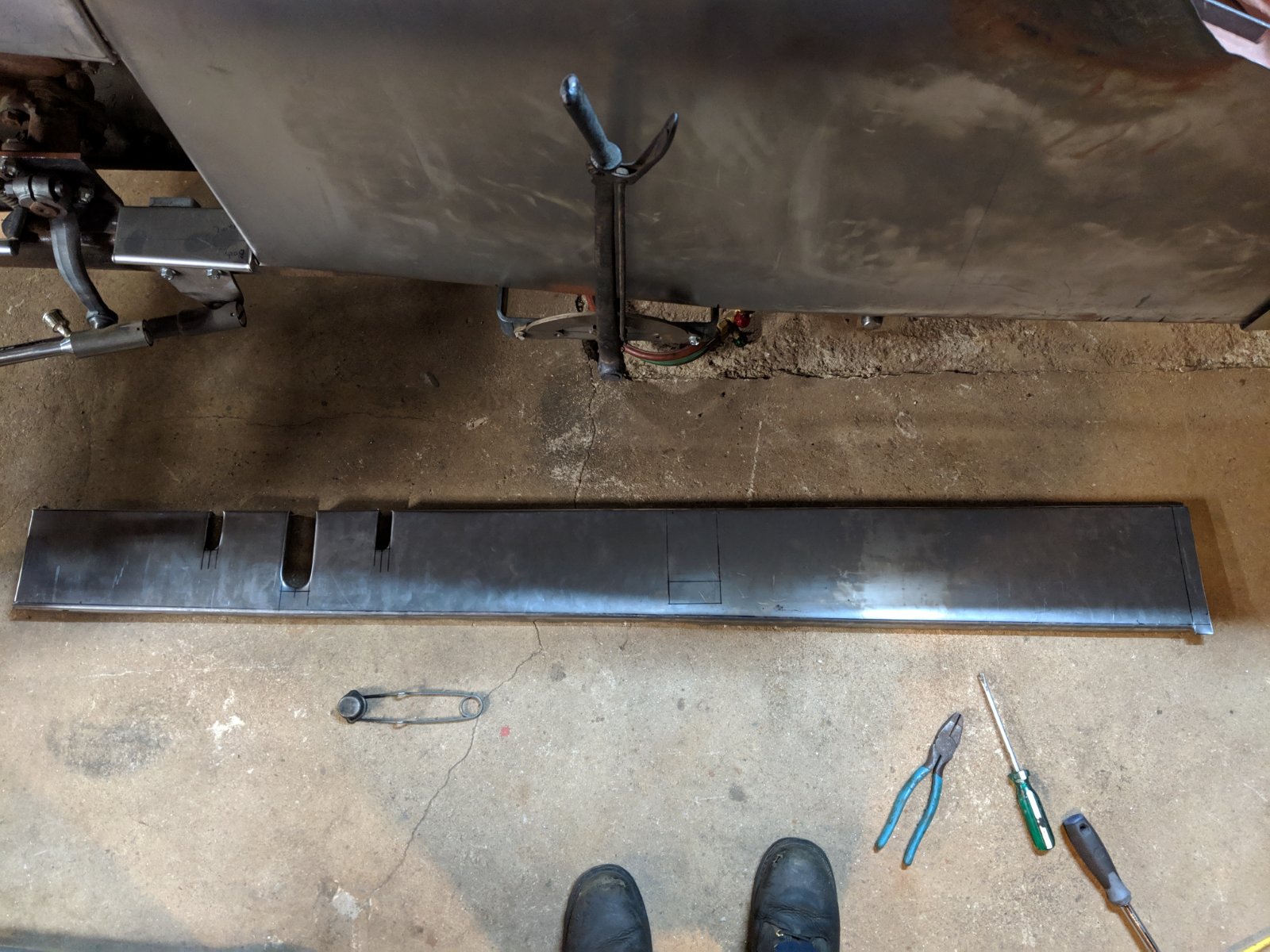 Because the rear cross member sat above the frame line, I had to come up with a bracket that supported the tail. Weld project number 2.