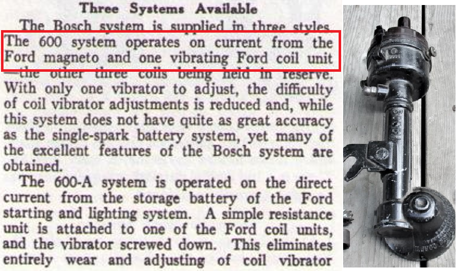 The addition of a distributor is almost always evidence that there was/is a problem with the magneto. The problem can be as simple as the magneto needs to be re-magnetized which can be done without tearing into the innards of the magneto, or it can be more serious which will mean the removal of the engine and hogshead. The distributor requires a six or 12 volt car battery. If the car is not equipped with a generator you will have to recharge the battery between trips. If your T has a self-starter it should have a generator.