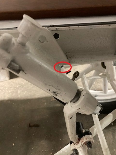 Here we are fitting the steering bracket for Hay wagon to speedster project. It is a bit off. The front hole in the base to the frame lines up, see the bolt and nut is on red circle. The other is somewhat off (red circled) and the top one is definitely off. What might be the problem? I realize that I need to put the base flange under the rail not over it as pictured but that still means that the rear hole in the frame is still somewhat off and the top hole in the bracket/frame is definitely off, more forward than the bracket hole. Also that new felt washer replacement is really big compared to the space it is supposed to go. How does it go on?
