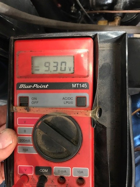 I tested the voltage at the generator post (both sides of the cutout) with an analog meter. I just tested at the battery to make sure I was getting similar voltage there in case there was some connection issue. It reads 9V with analog or digital meter.