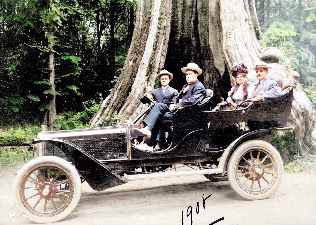 Just thought it should be mentioned that that 'tree' is one of the most photographed 'trees' in the world. Located in Stanley Park in British Columbia Canada, it is pretty much a huge hollowed out tree trunk. People have been parking horses, carriages and stage coaches in front of that tree since the mid/late 1800s. A lot of photos are taken of automobiles parked as the model K is some distance in front of the tree. Other photographs have cars backed into the hollow tree which makes the tree look considerably larger!