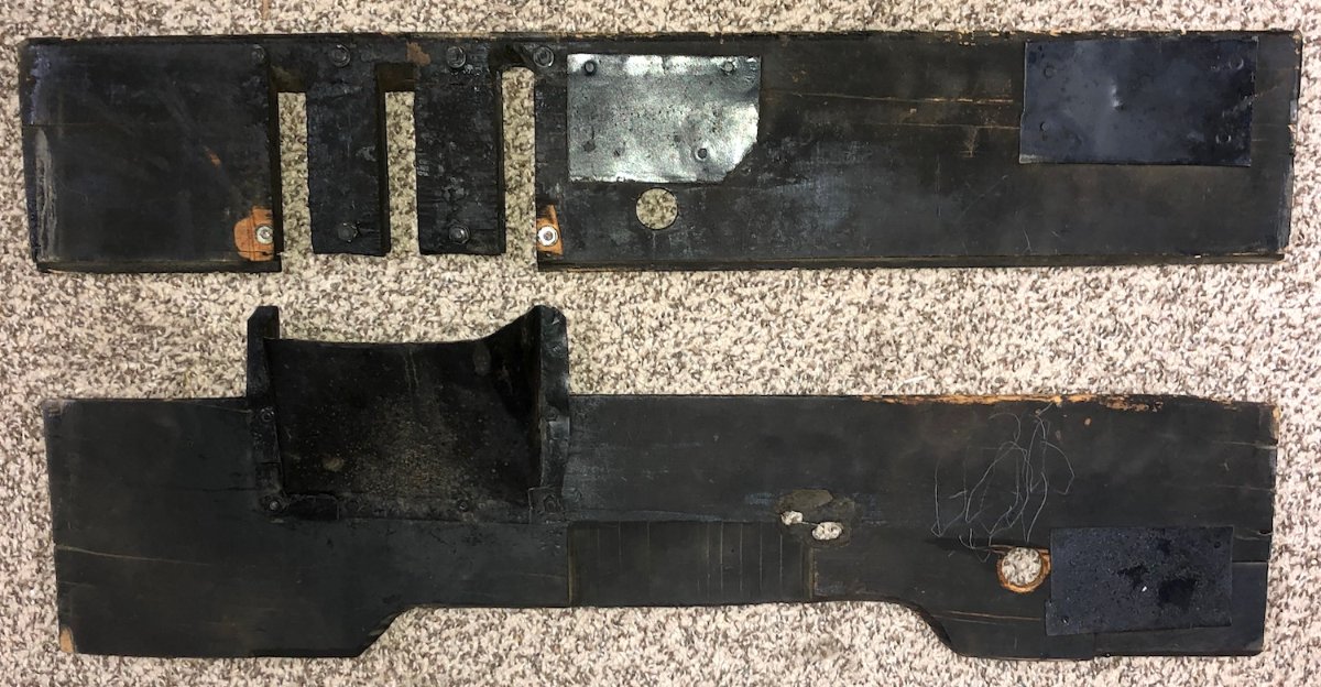 The floor boards show much damage & many repairs. Someone had thought of using patch panels before I did! I ran the toe board through the table saw to cut a channel for the speedo cable and got a bit enthusiastic with the saw but nothing that can't be patched up with putty and another patch panel.