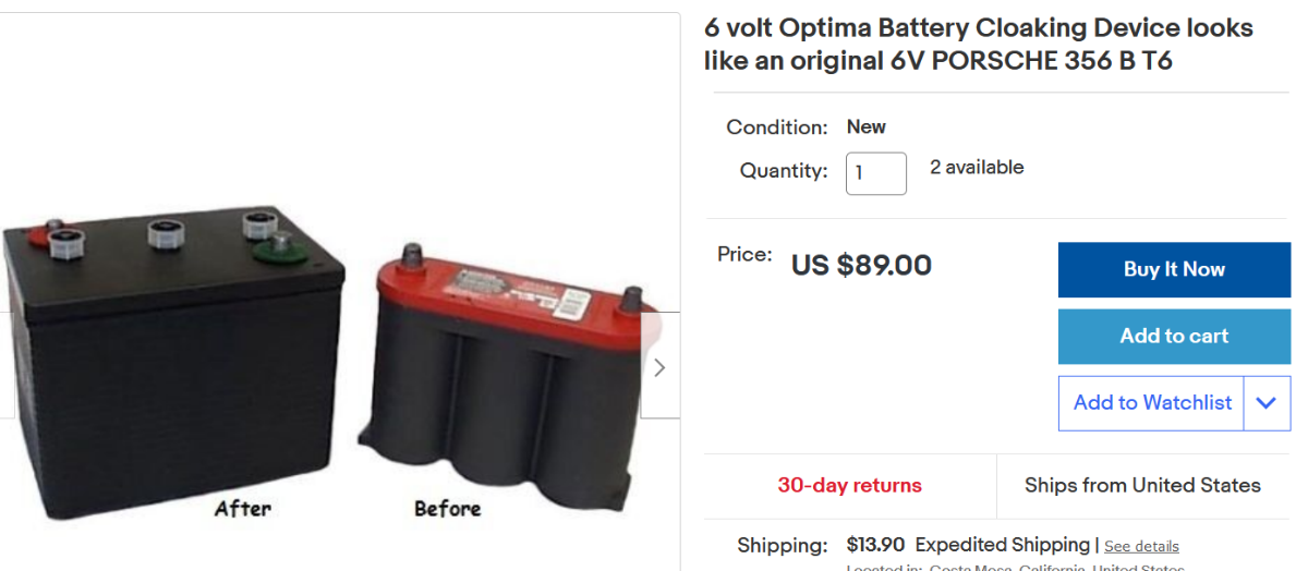 Russ's photo shows clearly what the battery box looks like. The seams are on two sides only, and that is what the Snyder and Langs unit lack. Not only that, but a real Ford battery case will not fit, which is typical for some reproductions.