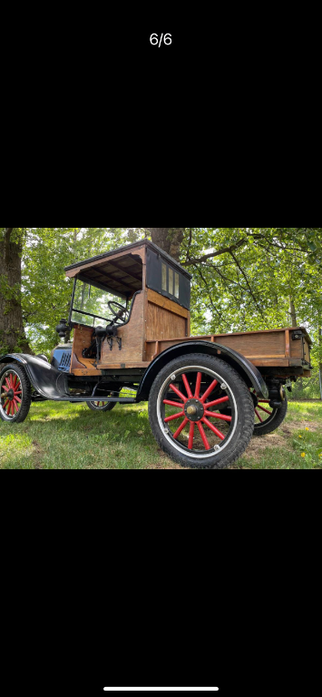 The radiator, hood and hood former all appear to be 1915 or 1916. Fenders are 1917 or later. Most of the chassis could be anything in the 1919 to 1925 eras. The running board brackets are 1920 or later. The wooden body looks really good, however is not done quite how original era truck bodies were usually done.