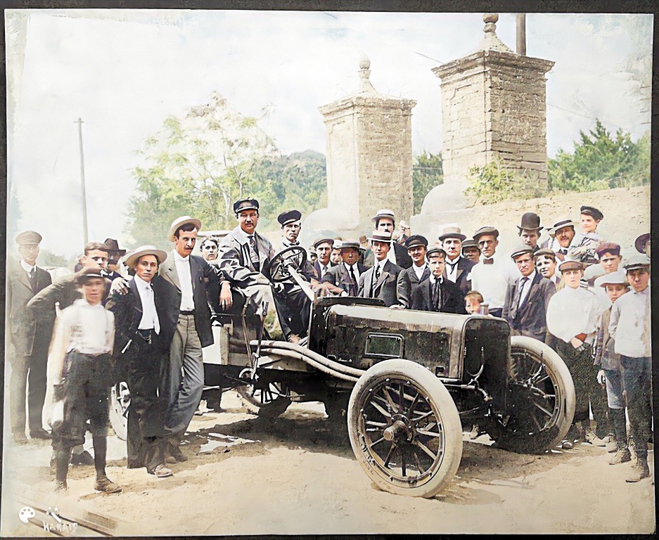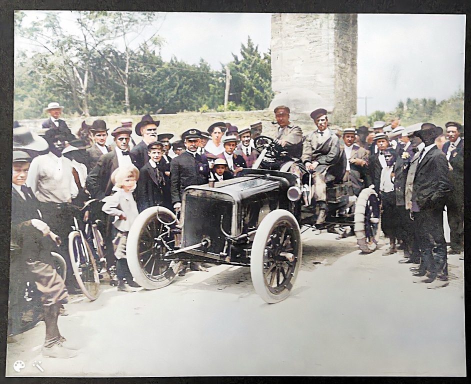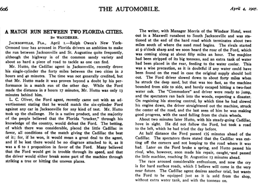 Two views of a 1906 Model K after a race in Florida. It "vanquished" a Cadillac: