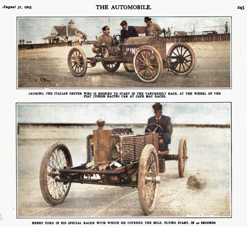 Colorized magazine photos, New Jersey beach races, late summer 1905: