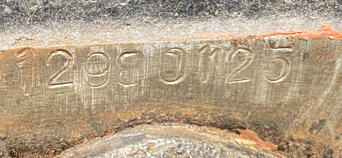 Looks like a dull #1 bouncing on a second strike. I'd say the number is 12980125 without question. A single cylinder valve cover is from 1921-27 and can also be used to confirm the date. The hand written Bill of Sale shows a different 1924 number 12893609