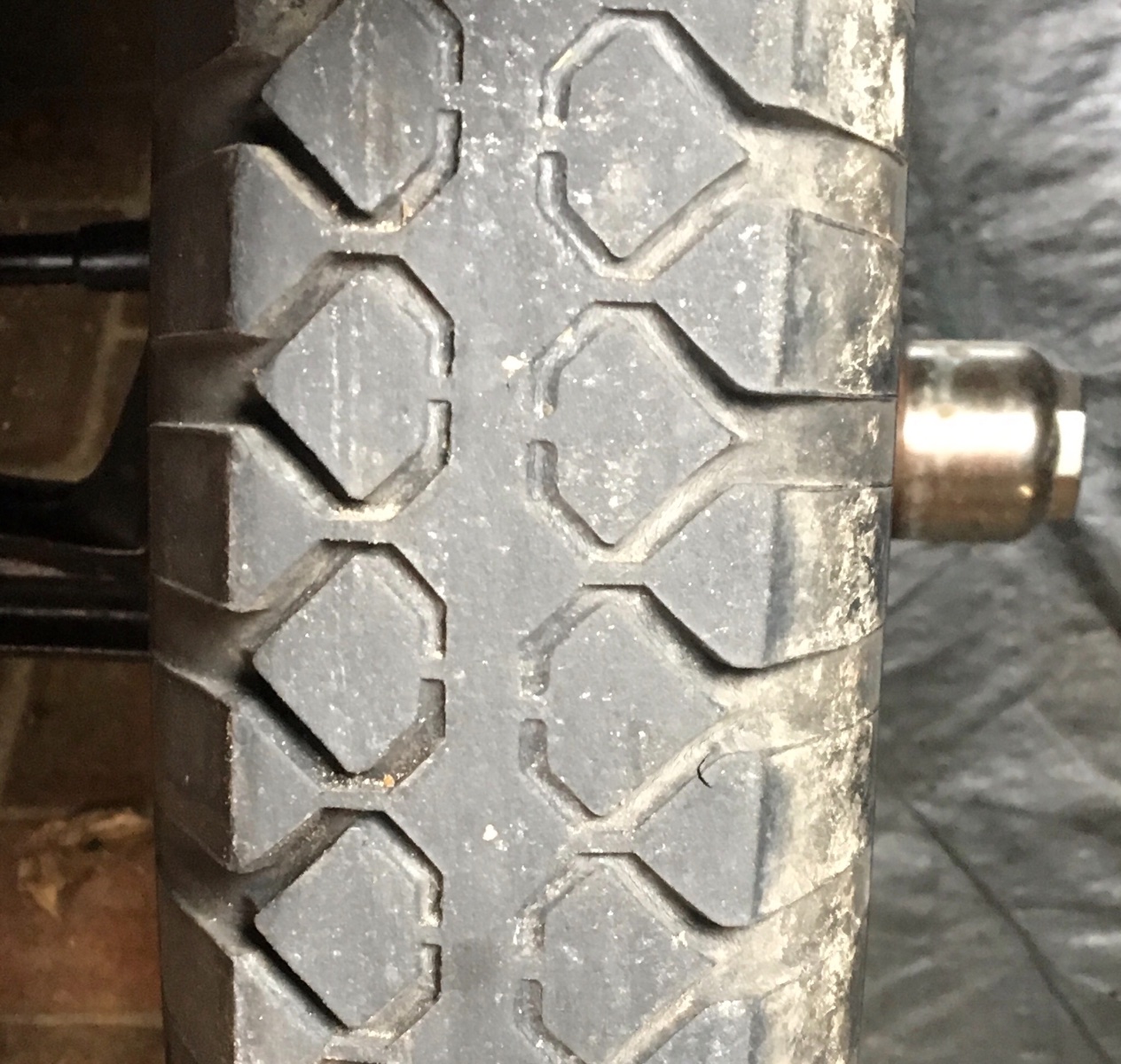 I guess I should actually rotate the fronts from left to right to make them wear on the other sides. But more work. Here is the drivers side tire.