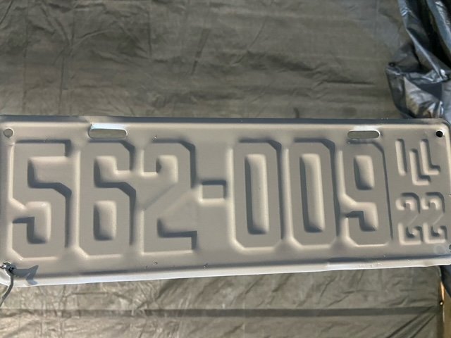 I have been working on this 22 for just less than a year and the owner is getting it Nov 2nd. His daughters wedding is November 7th. I am down to installing the hood and running boards. I am also restoring some 22 license plates for the car. I painted the entire plate black, the letter color, followed by two coats of white, the background color. Next I will lightly 600 sand the white off the raised letters and numbers exposing the black . Clear coat comes next. That makes for a real smooth finish with to edges on the letters/numbers. Art