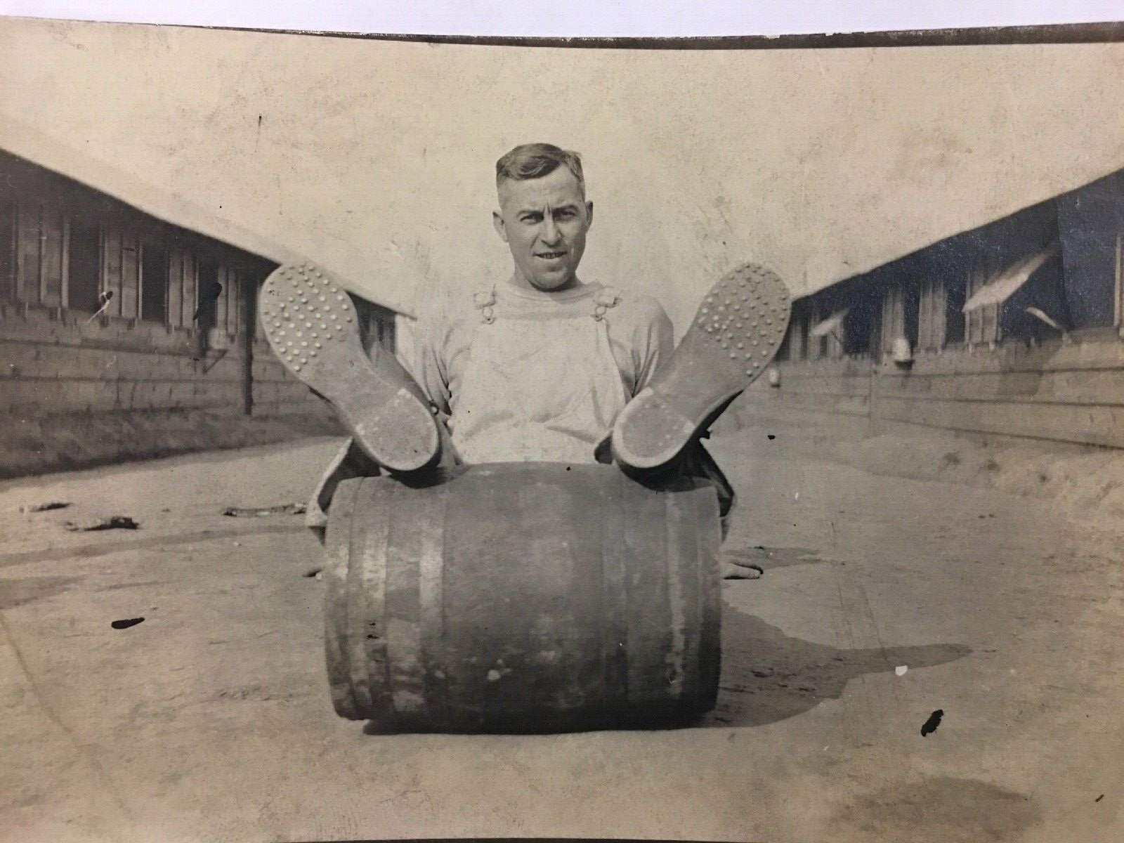 Round about 1919 Kalamity met a guy named Joe Jackson who had a problem with his shoes. Never one to know of a problem and let it go without a resolution Kalamity worked on a fix. Here we see what he called the hobnail sneakers. They were used for stealing bases, as can be seen here at one of the unused Army bases after WWI. The model is Knute Wallaby. Knute didn't want anything to do with stealing bases, but Kalamity needed to test the shoes. Kalamity learned of Knute's need for a job in the footwear industry. He had been involved in something called the black sox scandal and needed a job so he got this job with KD. KD knew of his situation and really had him over a barrel. They remained in contact over the years and Knute was his assistant on several projects.