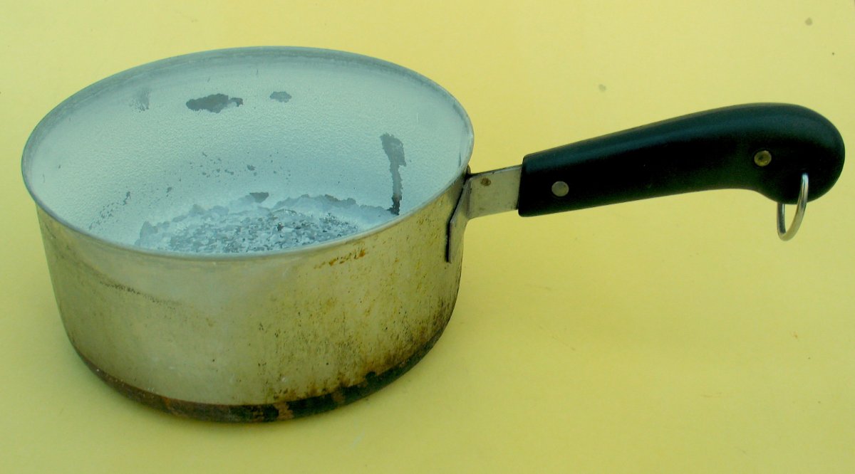 I heat tap water to make tea in this pan. Notice how bits of mineral scale have broken loose, perfect for clogging radiator tubes.