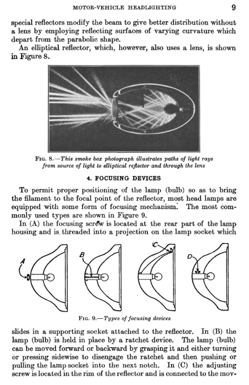 This page was a random choice out of many, it's an extremely condensed summary of that particular approach to vehicle lighting. For a more detailed example of the attempt to iterate towards a common standard you could read the 1919 Report of the 1916-1917 Committee on Automobile Headlamps here (downsampled to fit here and with thanks to the University of Toronto and the Internet Archive):
