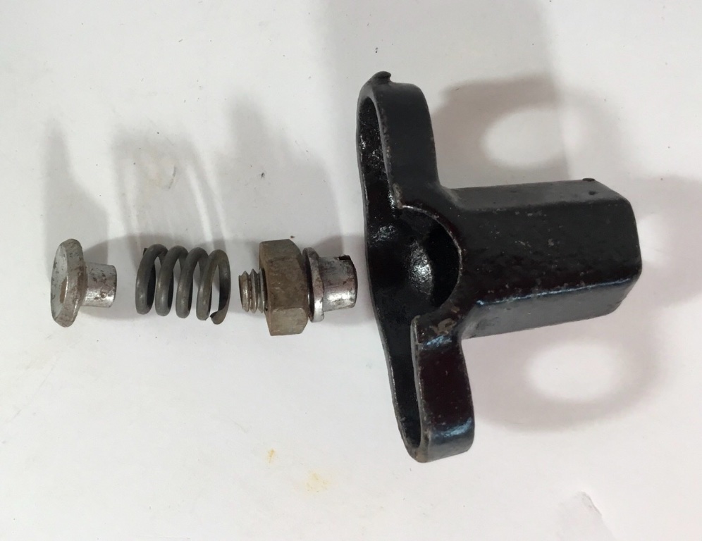 Jim, That is not an APCO brand setup. APCO did not use the nut bolt style like yours has and they were not flat sided. APCO used a cup and spring like yours but have a big threaded plug with a big screwdriver slot to adjust tension on the spring, and then a big cotter key went thru the casting, thru the screwdriver slot and out the other side of the casting to keep the threaded plug from backing out.