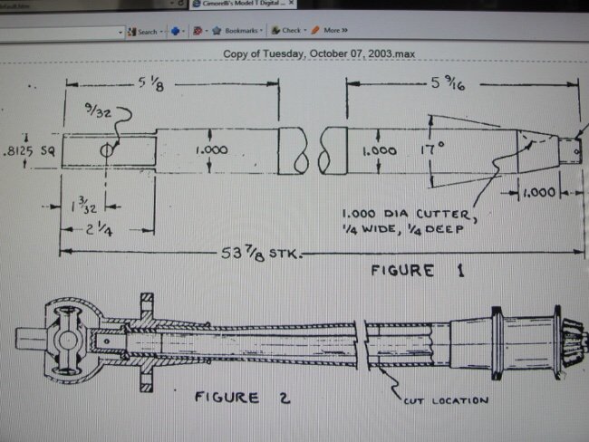 When I did mine, I cut from the U-joint end, the shaft I was using was good at the pinion end. If I made the bushing area a little undersized (I did!), no problem, just made a new bushing to fit. Pinion end, would require more work; taper, thread, keyway and press fit for the pinion bearing. Even the modern replacement pinon bearing would still need about the same press fit, so the inner race does not spin. I had someone I know do the square end machining.