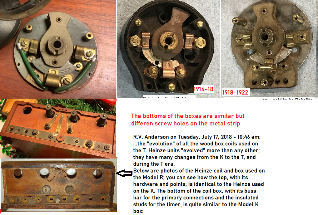 Keith is correct. The box is post-era and is rather loosely based on the 1907 Heinze box used on the Model R. I have built several of these, along with the correct coils. They are a ton of work to build correctly, just like Heinze did, right down to the correct adjusting sticker pasted inside the lid, but once finished they are very reliable and simple to adjust. The same basic coil unit was also used on the Model K, but different enough on the bottom that they will not exchange.