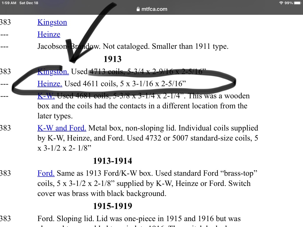 We (me) tend to think fords were the only cars made, but in truth, just half. Thanks Keith, the coil is very close to the Heinze size, and with the right switch and new side latches, could be a very good and credible replacement for the NRS heinze box. Need to see what the very early heinze coil size is. Perhaps that’s the way forward for this item. Thanks for all the help. N photo courtesy of Jerry Van