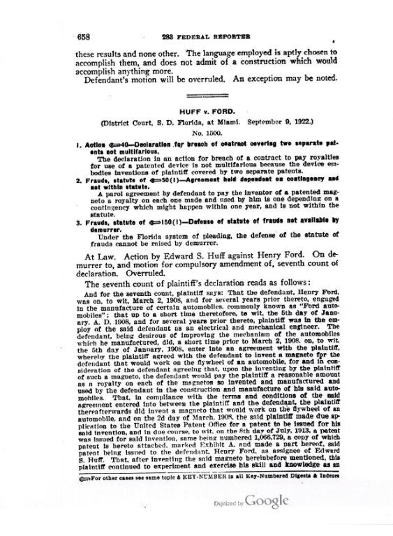 I wonder why Ford T's had the magneto from 1908 to 1913 and yet it was Huff who got the patent after several years of using it in the T. Why did not Henry himself patent it?